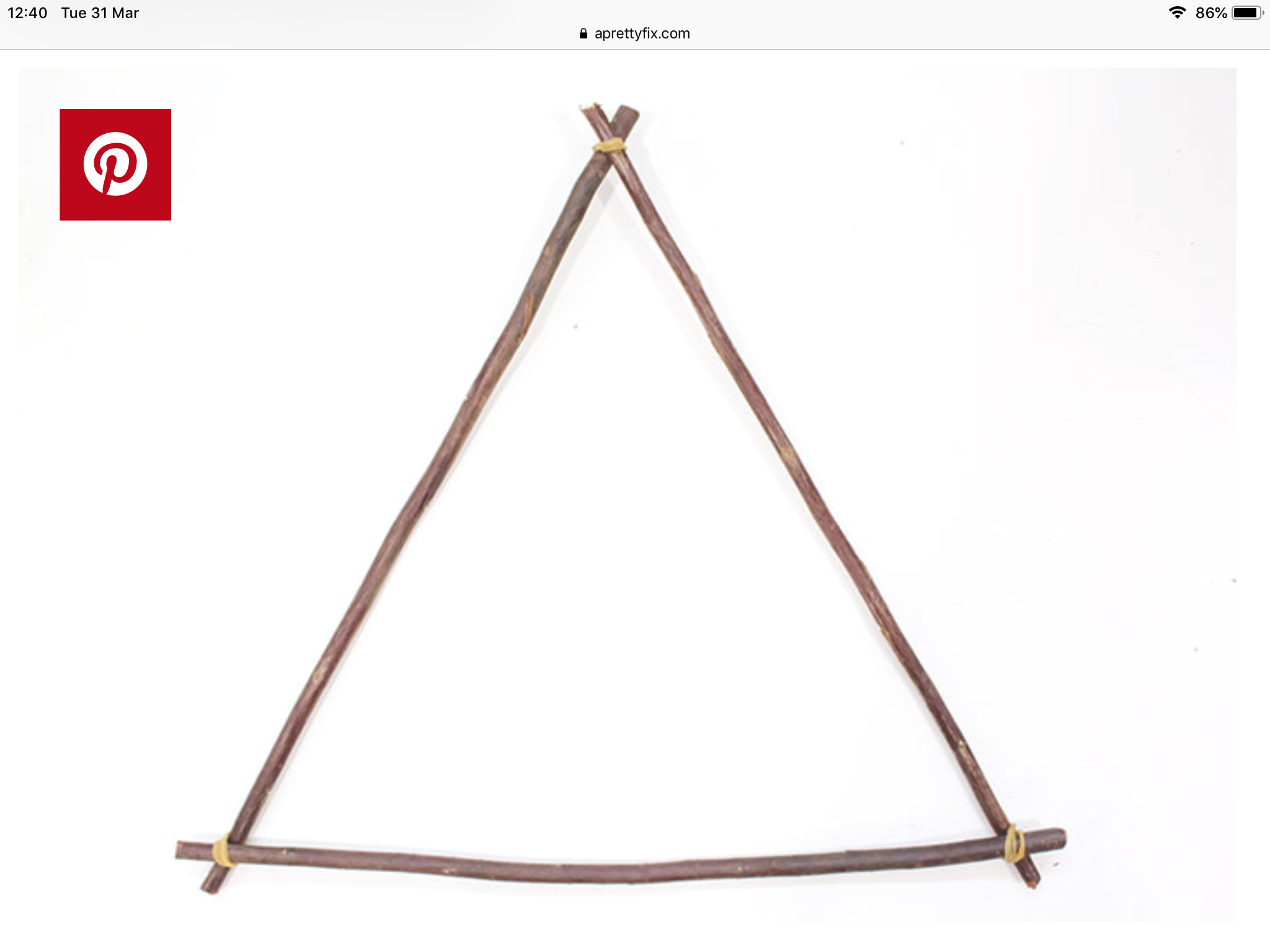 Your second challenge is to look around your house or your garden to find some resources to make a triangle. See the photo example in the picture attached below of a triangle made out of sticks. You could use anything you like- food, straws, pencils- it’s totally up to you!