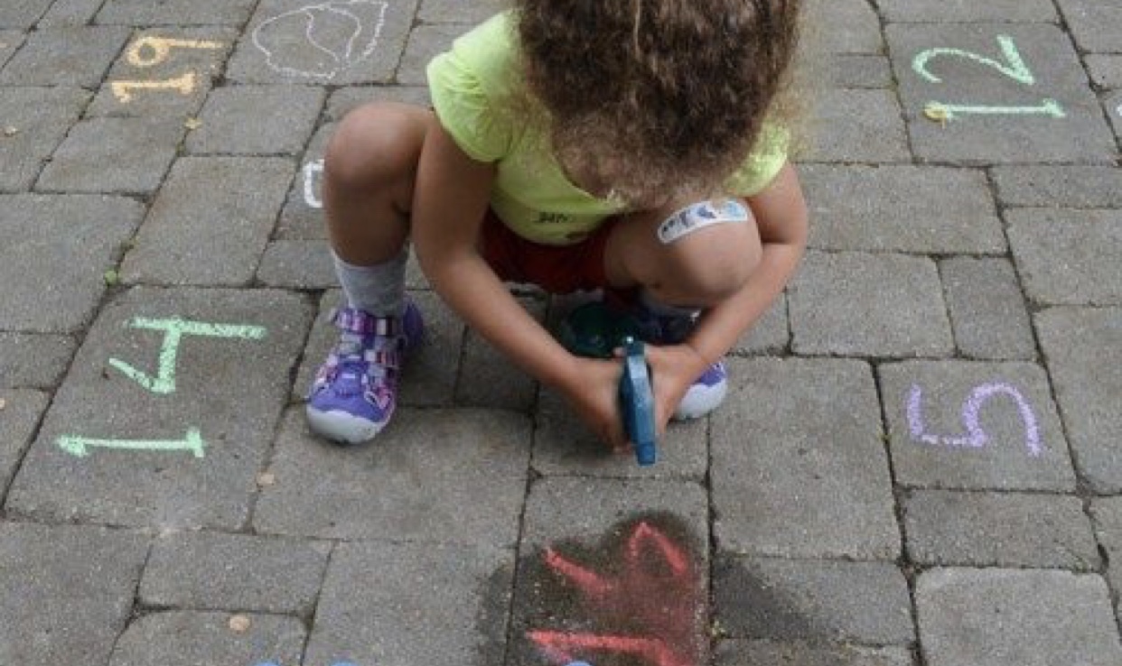 Today’s learning activity is to chalk some numbers on the ground outside. Say a number to your child e.g 6. Encourage your child to squirt, spray, wash away or simply point to the correct number (see photographs for inspiration). Can your child find number 6? Do they know one more than 6? Repeat with different numbers.