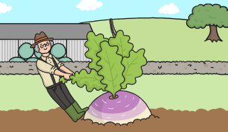 The farmer tried to pull the enormous turnip out of the ground but it was too big for him.